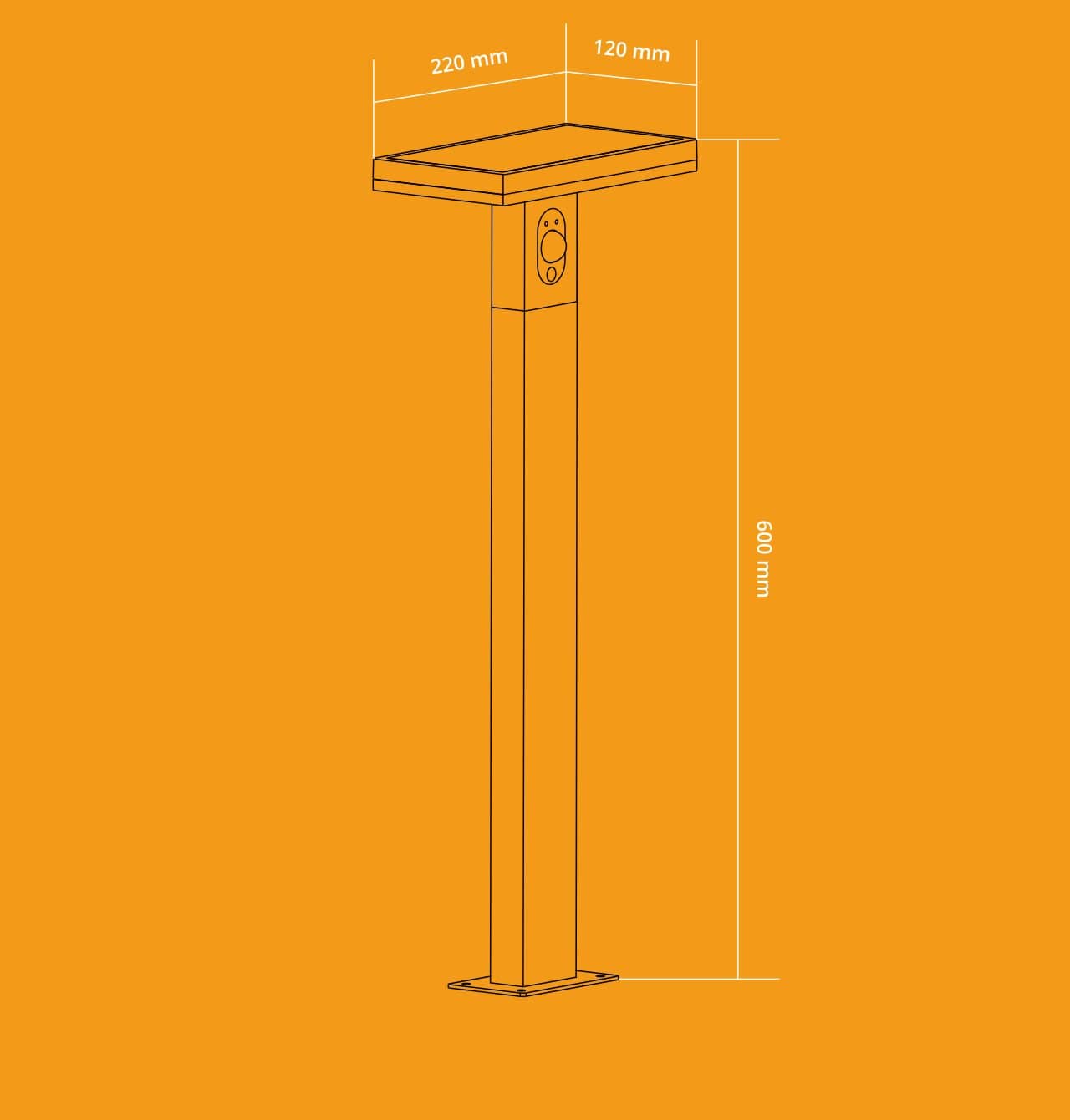 PRDX MANDULIS Square LED Wegeleuchte Solar 60cm, 3000K, 260lm, wetterfest mit Akku und Bewegungsmelder 3 Modi